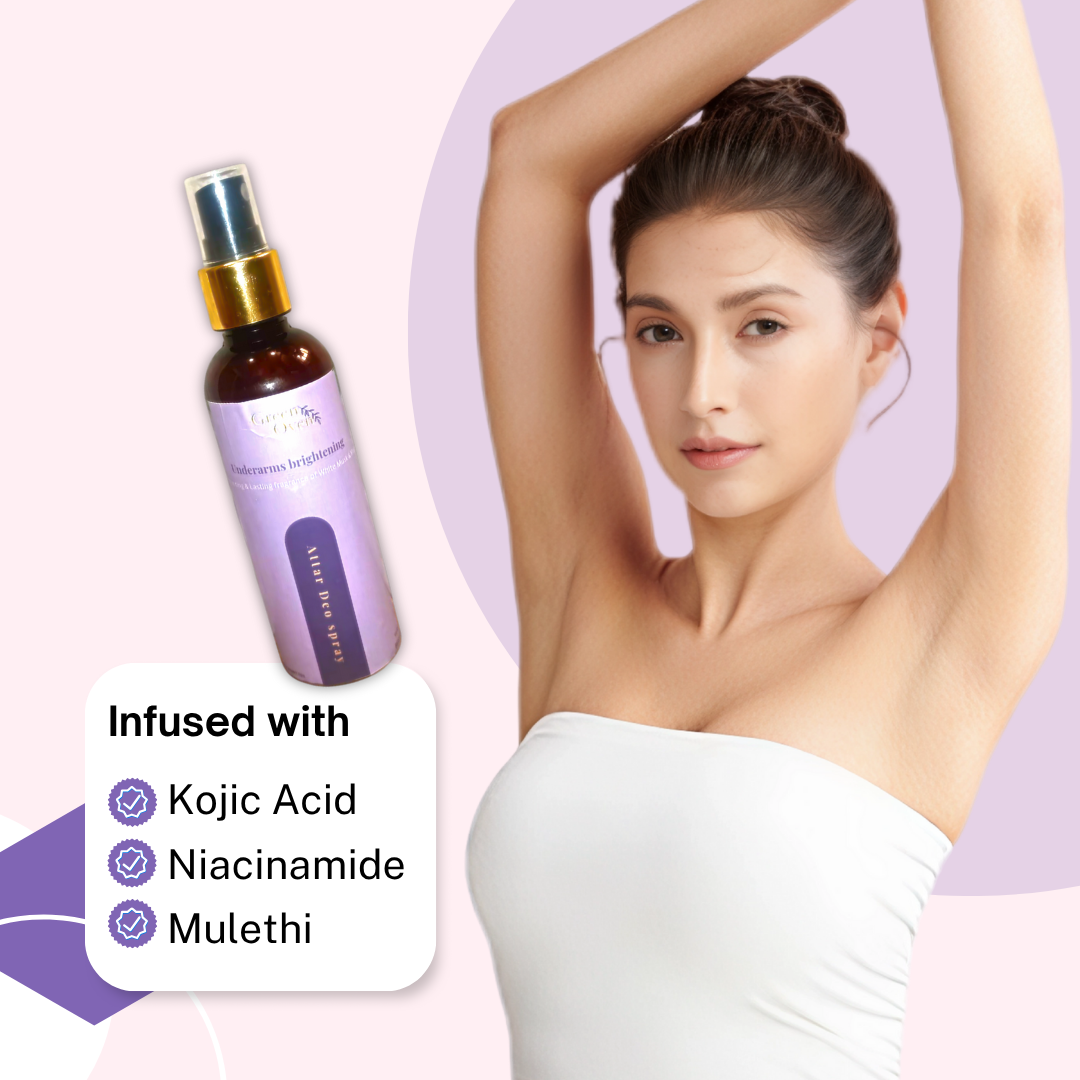 Specially formulated to control body odour while reducing dark patches, this gentle yet effective spray keeps you feeling fresh all day long. Enriched with aqua, kojic acid, licorice, and niacinamide, it works to brighten and even out skin tone. The delicate blend of mogra and white musk leaves a long-lasting, elegant fragrance that suits all skin types.