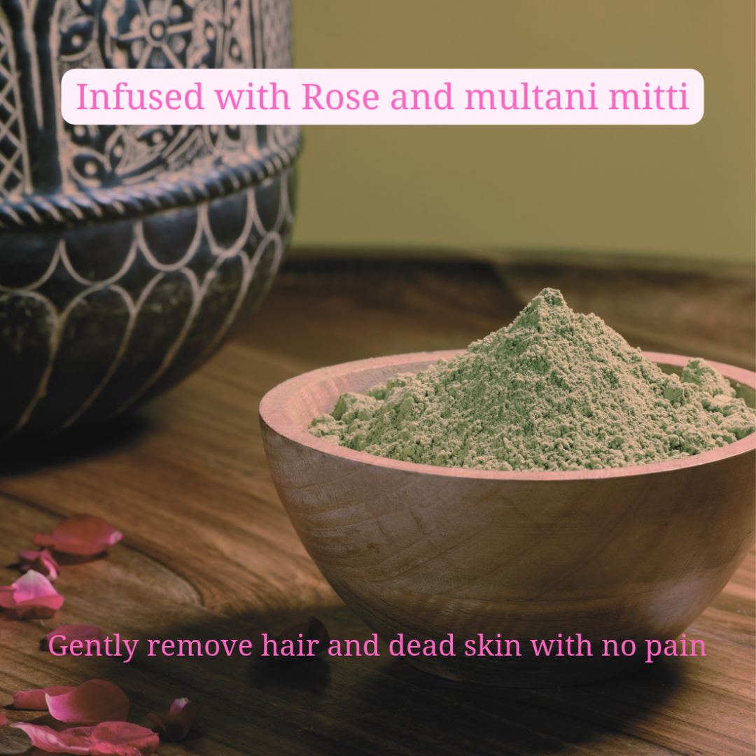 Made with pure multani mitti and rose oil, this natural pack gently removes unwanted hair from the face and body while leaving skin soft, smooth, and glowing. Suitable for all skin types.